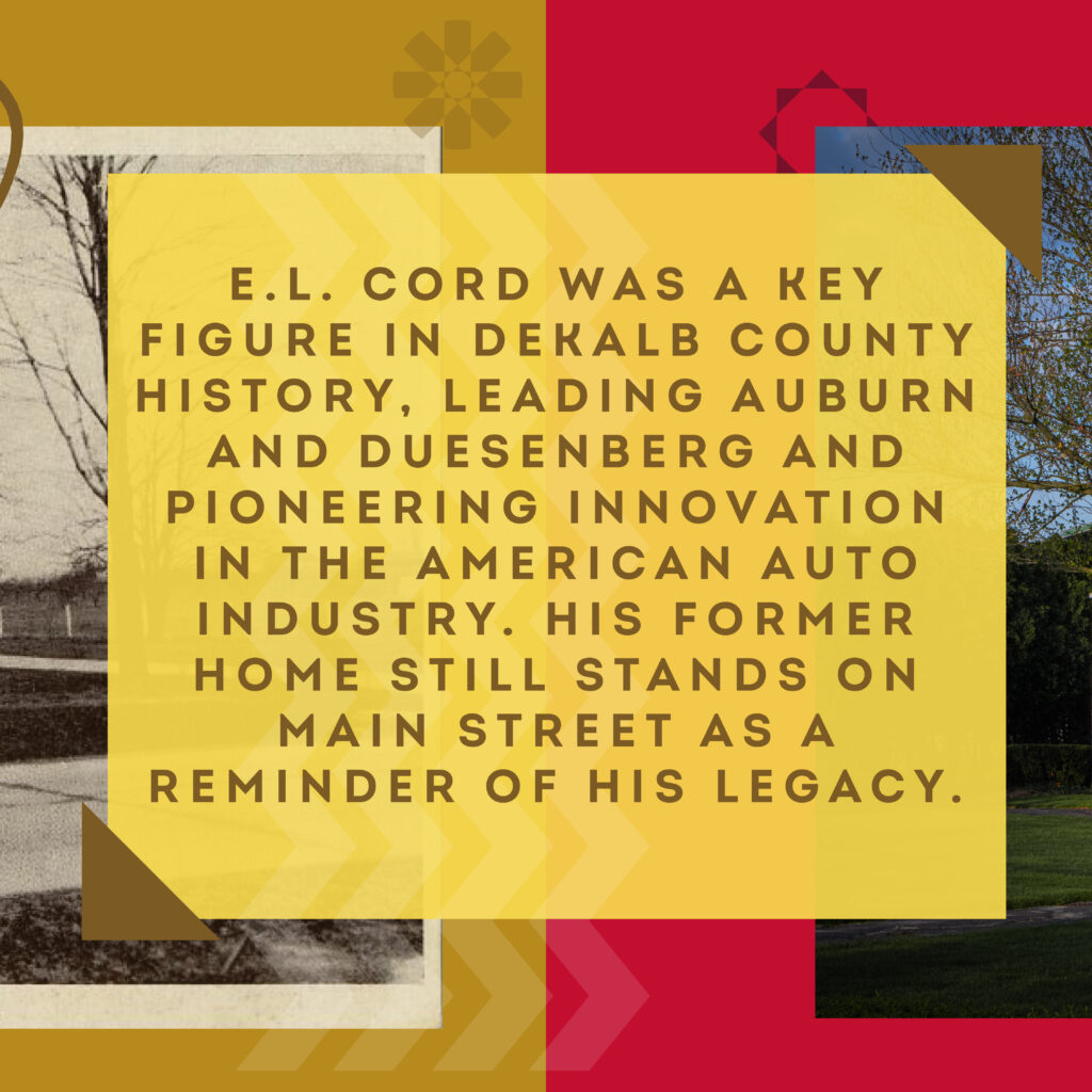 Errett Lobban “E.L.” Cord is one of the most important figures in DeKalb’s history! Controlling the Auburn and Duesenberg car brands and as the young founder of the Cord Corporation, Cord was a trailblazer in automobile development in America. Go for a walk on Main Street and see the legendary businessman’s former residence seen here. If you’re interested in learning more, get a self guided tour map at Visit DeKalb County or stop into the beautiful Auburn Cord Duesenberg Automobile Museum.